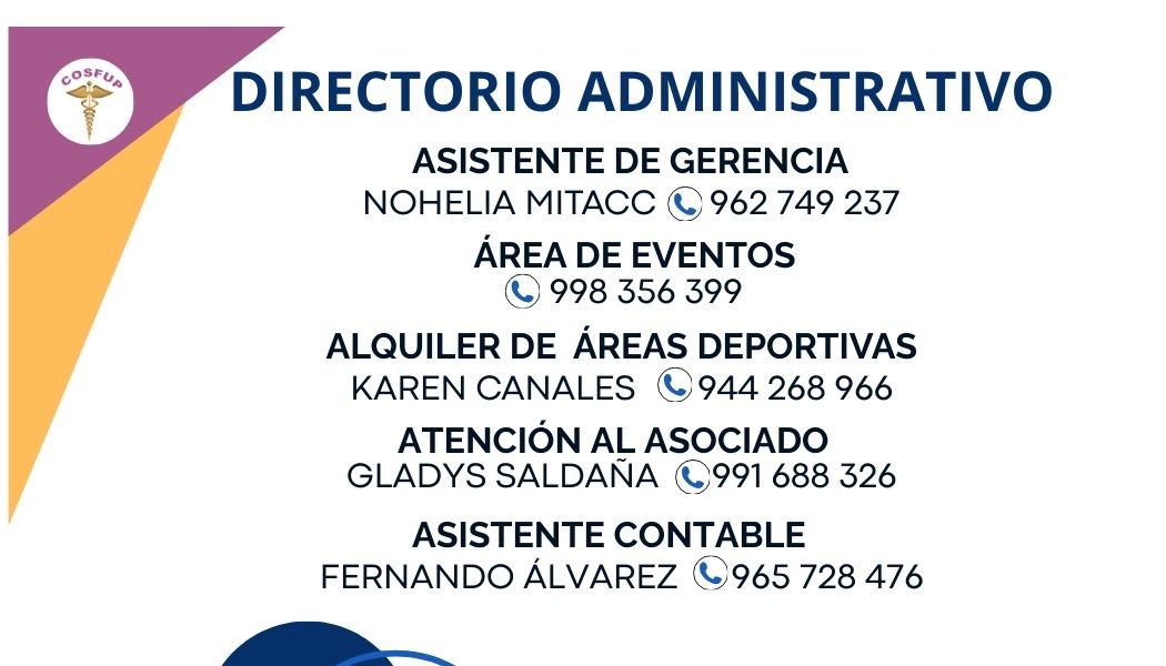 Números de celular de las áreas administrativas, para consultas e informes.